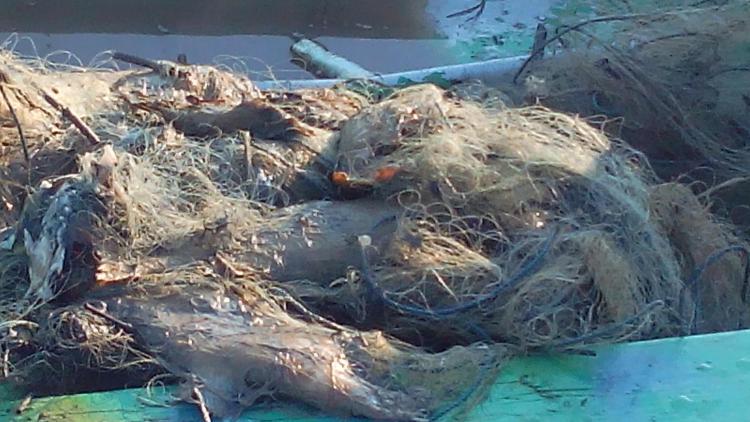 08.02.2016 Работники РОО "КРООР" на Симферопольском водохранилище выловили браконьерскую сеть